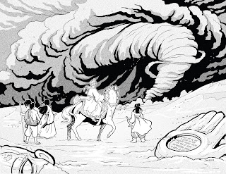This was the twenty first session of my Heavenly Fragrance Campaign, a living adventure for Wandering Heroes of Ogre Gate, prepared using tools and procedures discussed in the Wuxia Sandbox blog posts. This campaign is intended to play as a sandbox but with more dramatic elements. It is a two player campaign where run in what I call “Condor Heroes Mode”, where characters begin with only one Kung Fu technique, their family background established and connected to the setting, and using a level advancement system based on encounters with higher level masters who train them. It also makes use of a campaign Shake-Up table, rolled once each session, to manage an unfolding background situation (see STATE OF THE MARTIAL WORLD). I will include footnotes to explain what procedures were invoked during play. The campaign is set in Fan Xu, largely using the Sons of Lady 87 book.