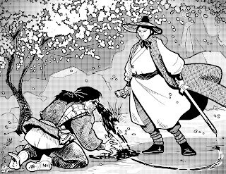 Heading to the village they spoke with headman Shan, who gave them hospitality, including a meal of fried fish. It was a farming village that also exported fabrics. When Zheng Bao offered any help to repay them for food and shelter, the headman asked if they would assist the villagers in clearing the avalanche.