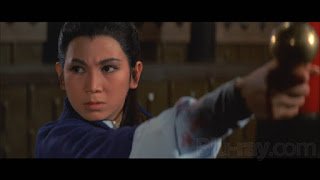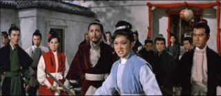 The three heroes the movie follows are Blood Master Linghu Lei, Senior Han and Yu Fang Fang. Blood Master Linghu Lei, escapes the slaughter with an injured Shang Qing. Bringing Qing to a cave he tries to cure her internal injuries over the three years. They fall in love, but she succumbs and asks him to erect a grave tablet to her as his wife. After her death he is even more formidable than before, but half-crazed. Senior Han was kicked out of the sect before the slaughter and found a master named Holy Sword to help train him for revenge. He is the most straight forward of the three heroes here (and I had the impression the master ejected him from the sect before the slaughter over a minor issue of etiquette so he could avenge them). Yu Fang Fang feels almost like the real protagonist of the movie. Played by Ivy Ling Po, she lost her arm in the attack on Zhongzhou Sword Sect, but was later found by their grandmaster, a woman who took her to the mountain temple and trained her. She fights one-armed and has the Dragon Sword, a clever blade that can retract into the hilt and extend to a variety of lengths. This allows her for instance to slip away easily when her sword gets hooked by another blade. It felt fitting fort a one-armed swordswoman.